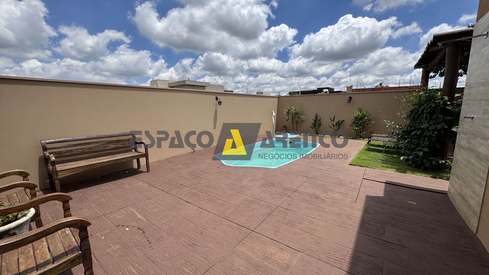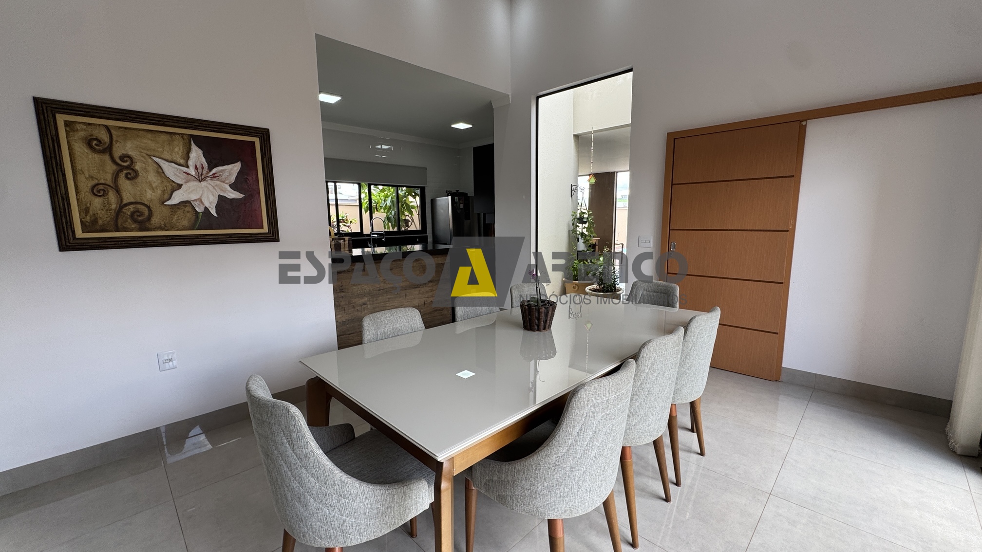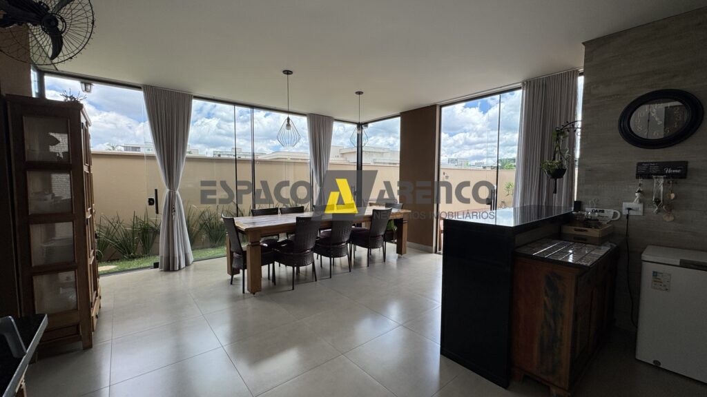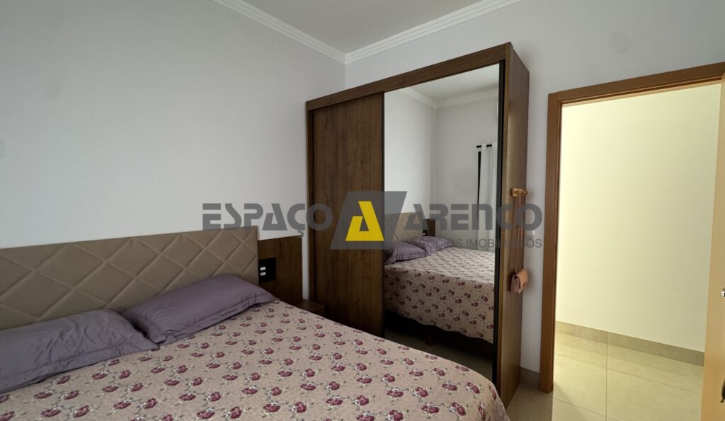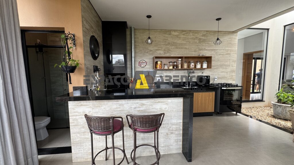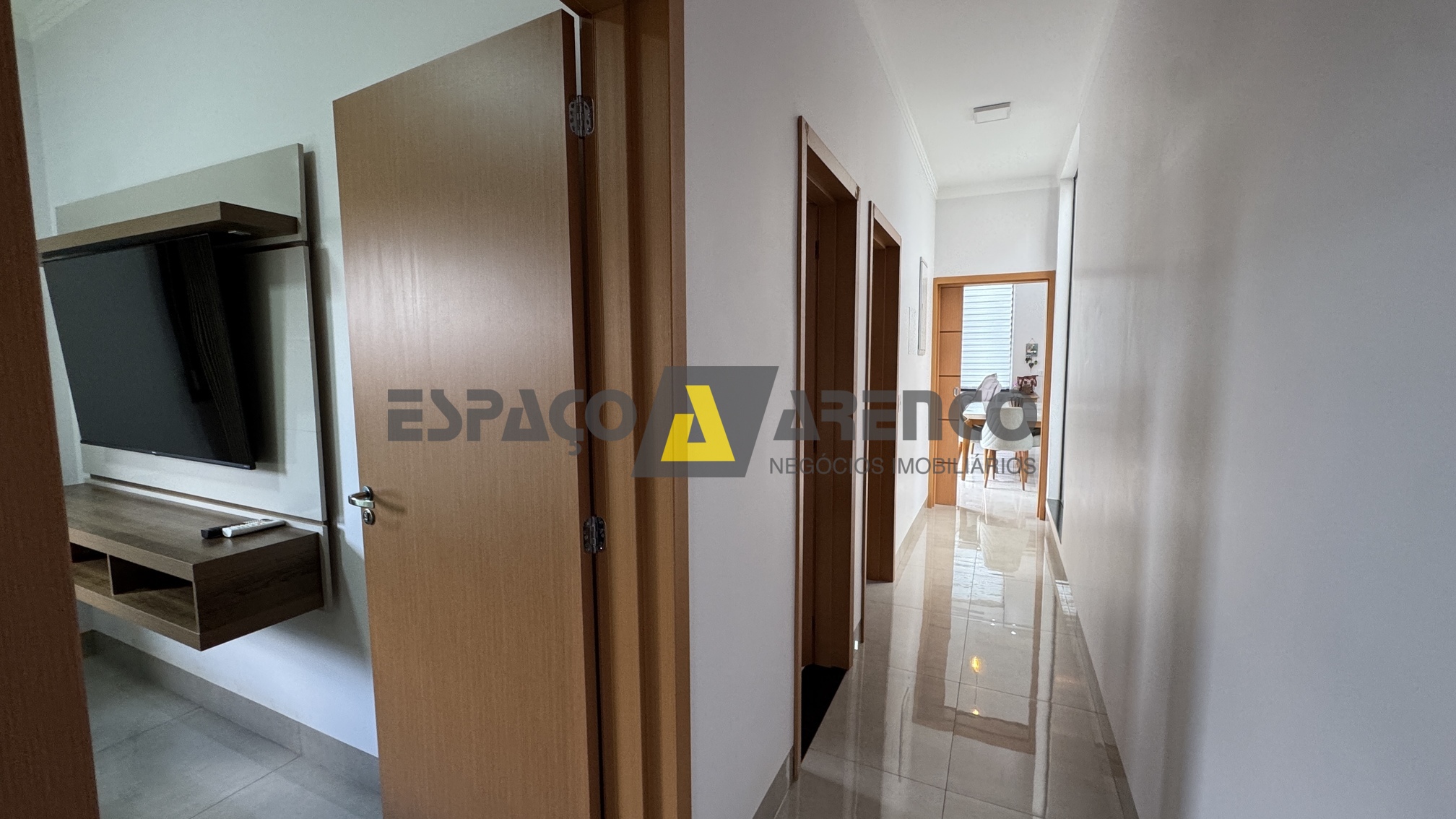 Três dormitórios sendo uma suítes com closet e porta-balcão, banheiro social, ampla sala para dois ambientes integrada com cozinha, área de serviço, varanda gourmet com churrasqueira, banheiro, área verde, piscina, garagem para 02 carros coberto e 02 carros descobertos.
