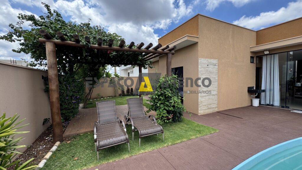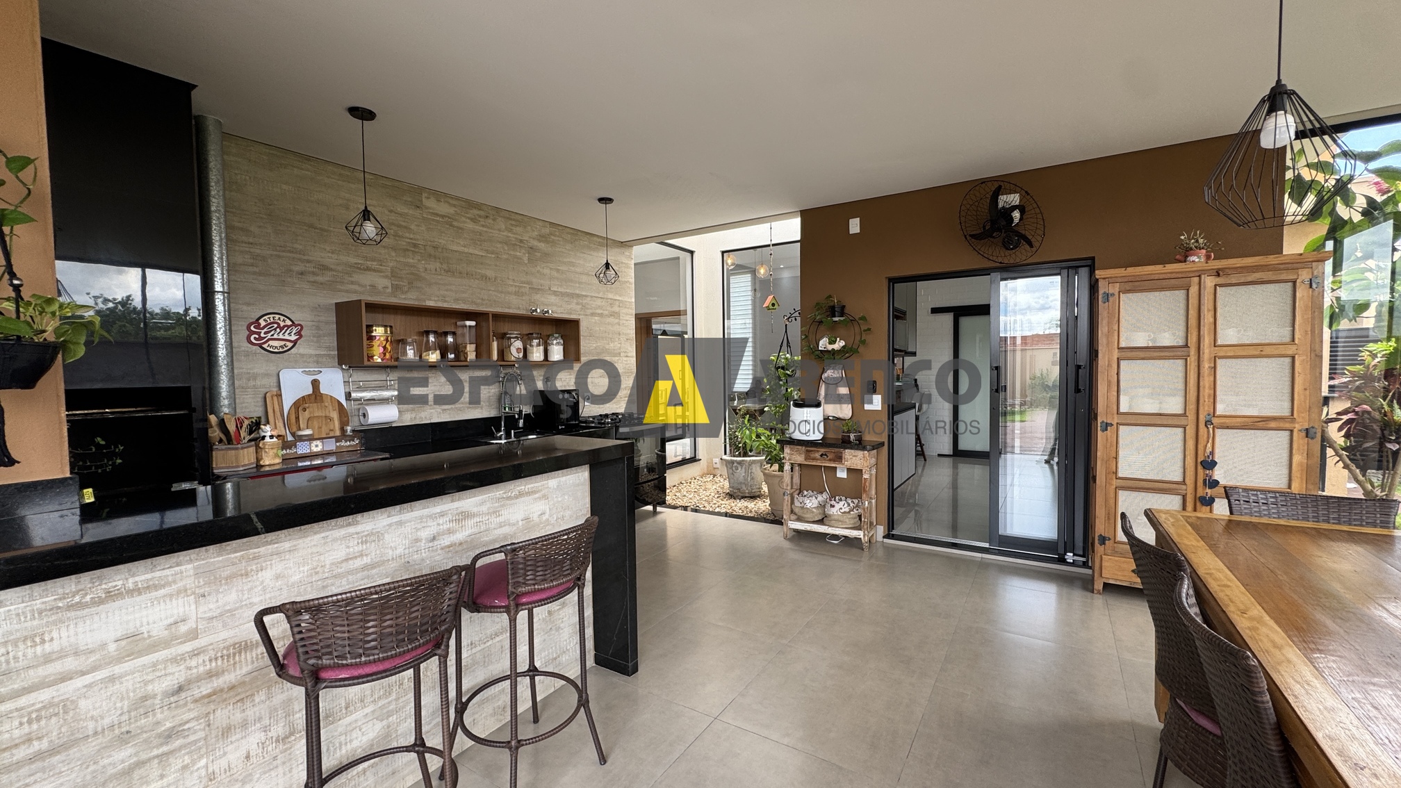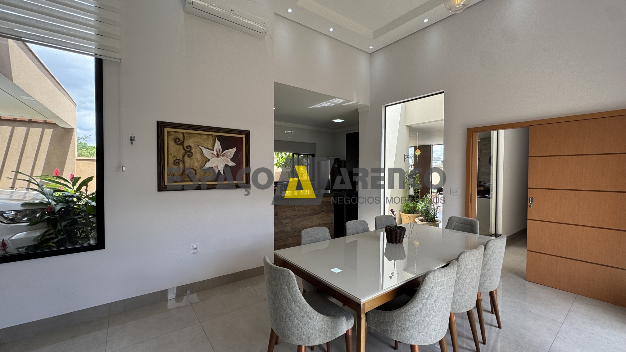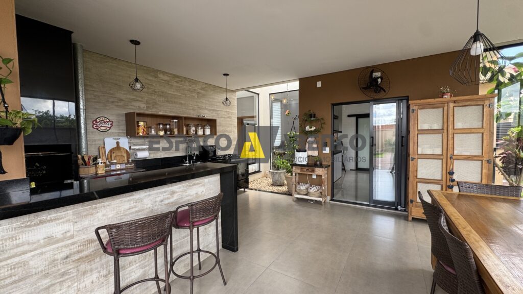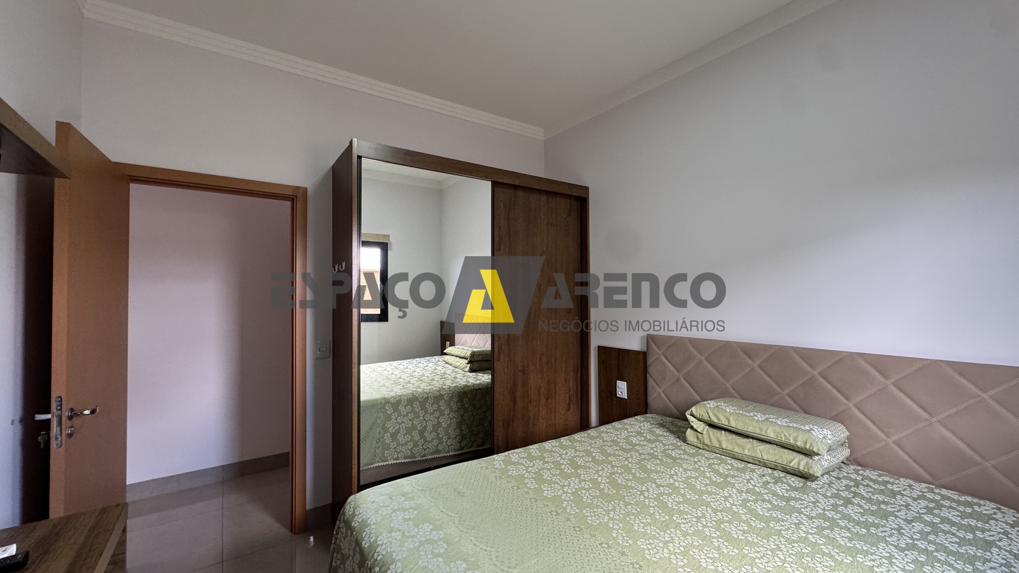 Três dormitórios sendo uma suítes com closet e porta-balcão, banheiro social, ampla sala para dois ambientes integrada com cozinha, área de serviço, varanda gourmet com churrasqueira, banheiro, área verde, piscina, garagem para 02 carros coberto e 02 carros descobertos.