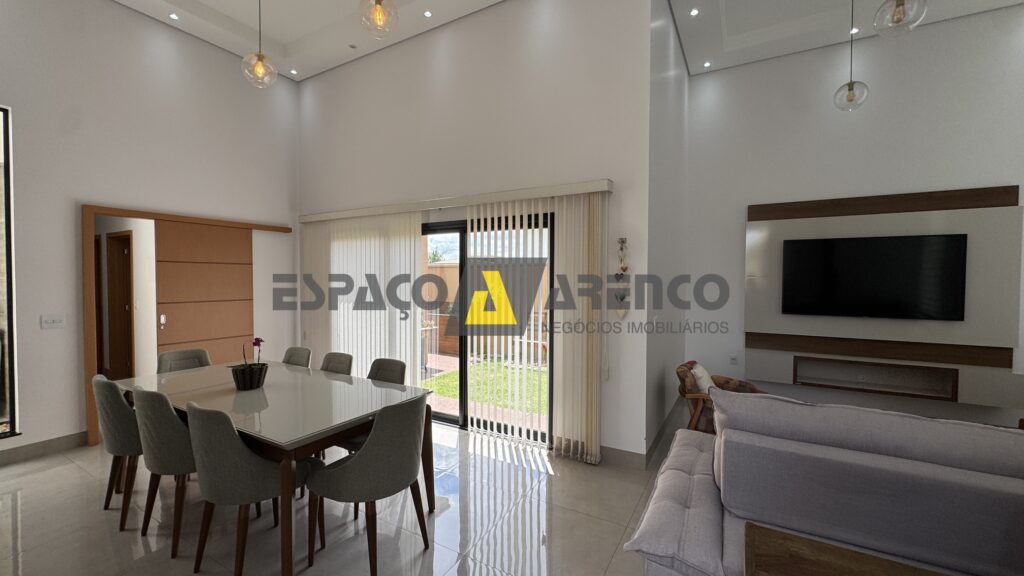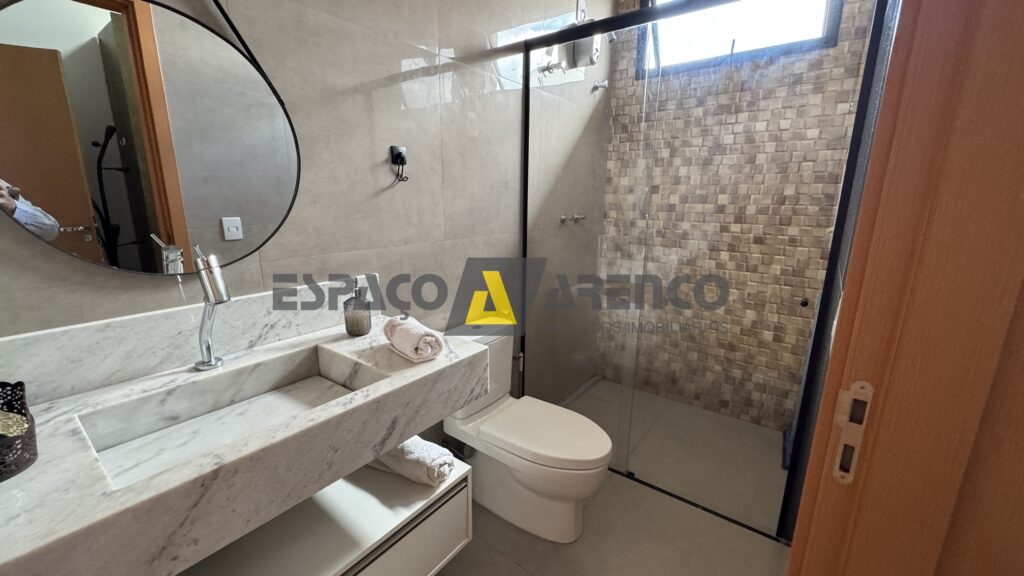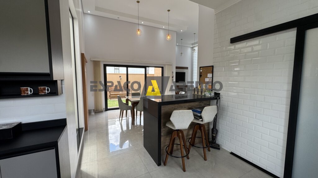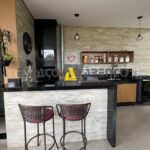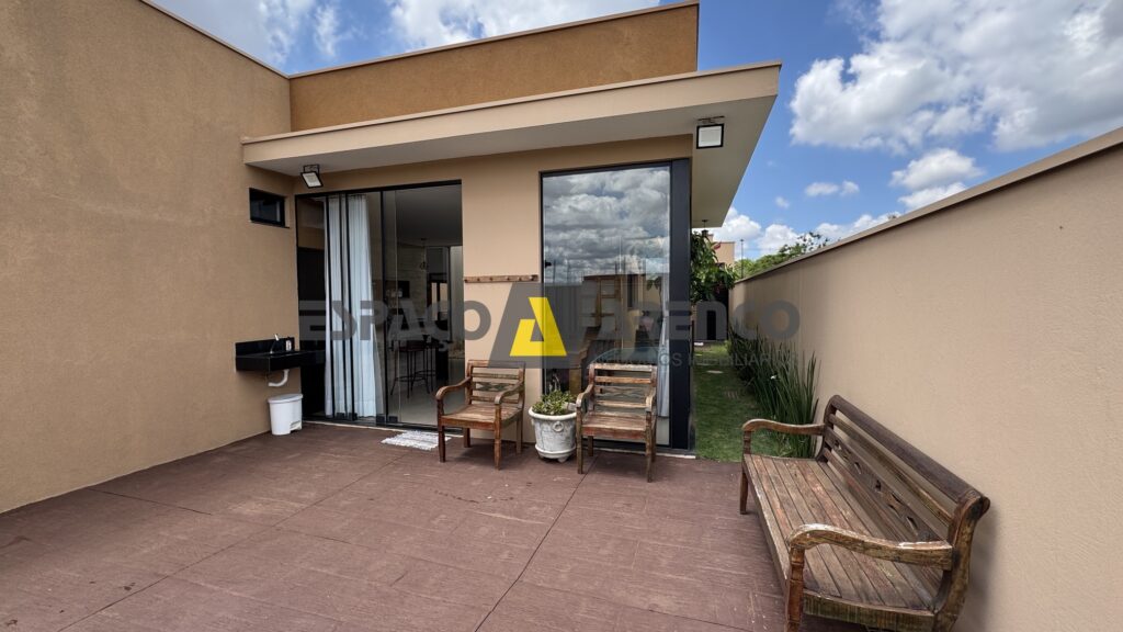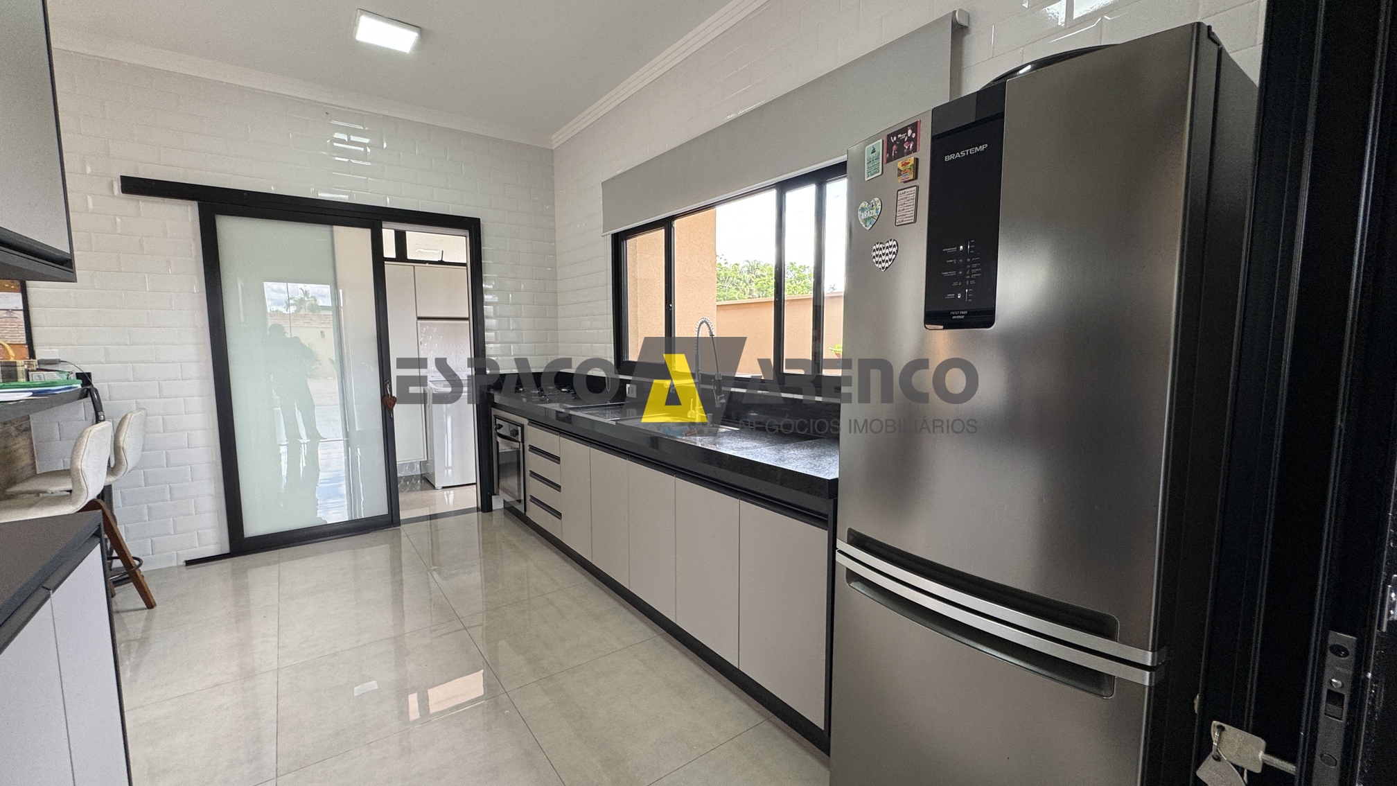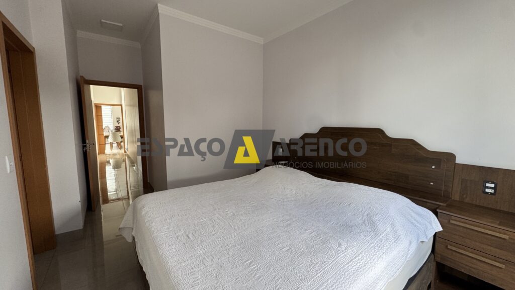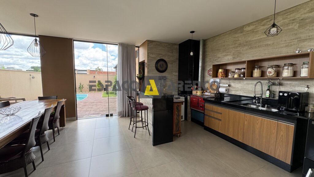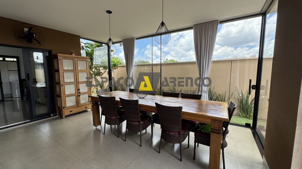 Três dormitórios sendo uma suítes com closet e porta-balcão, banheiro social, ampla sala para dois ambientes integrada com cozinha, área de serviço, varanda gourmet com churrasqueira, banheiro, área verde, piscina, garagem para 02 carros coberto e 02 carros descobertos.
